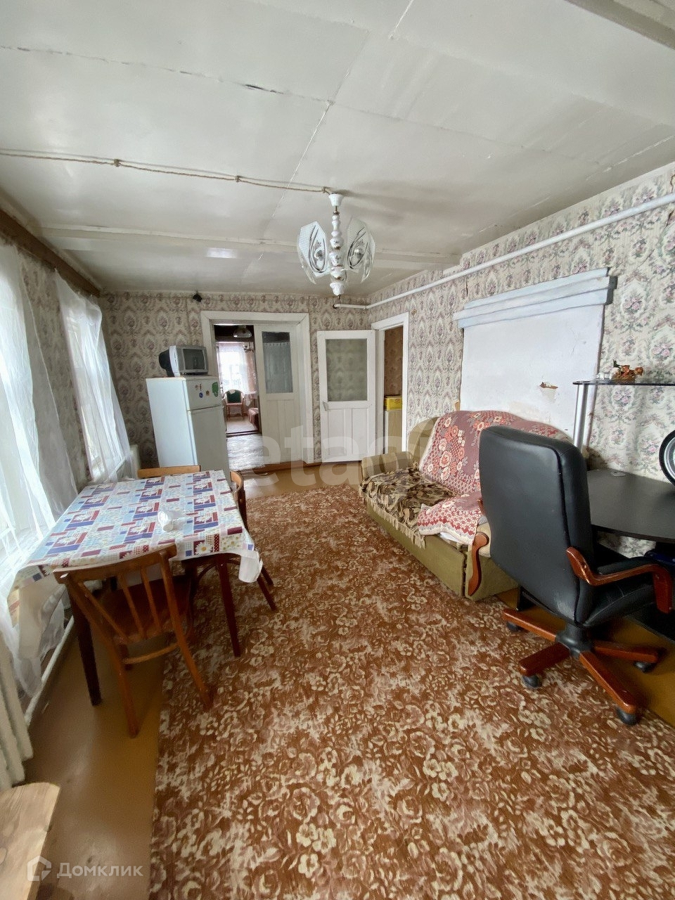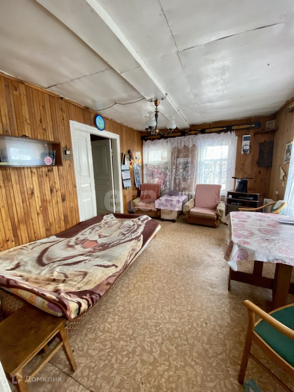 В доме три комнаты, две из них большие, большая кухня, просторный холл.Есть кирпичная пристройка и крытая беседка.