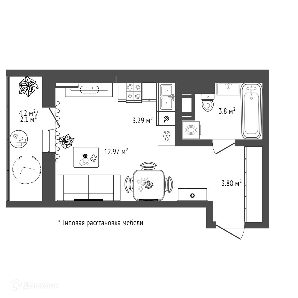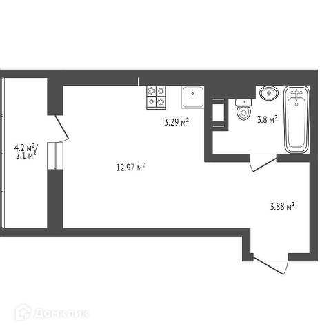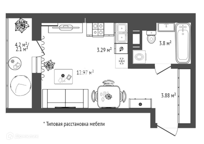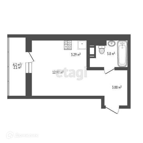 Общая площадь квартиры с учетом лоджии 28,14 квадратных метра.