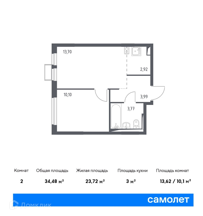 Общая площадь 34.48 м2