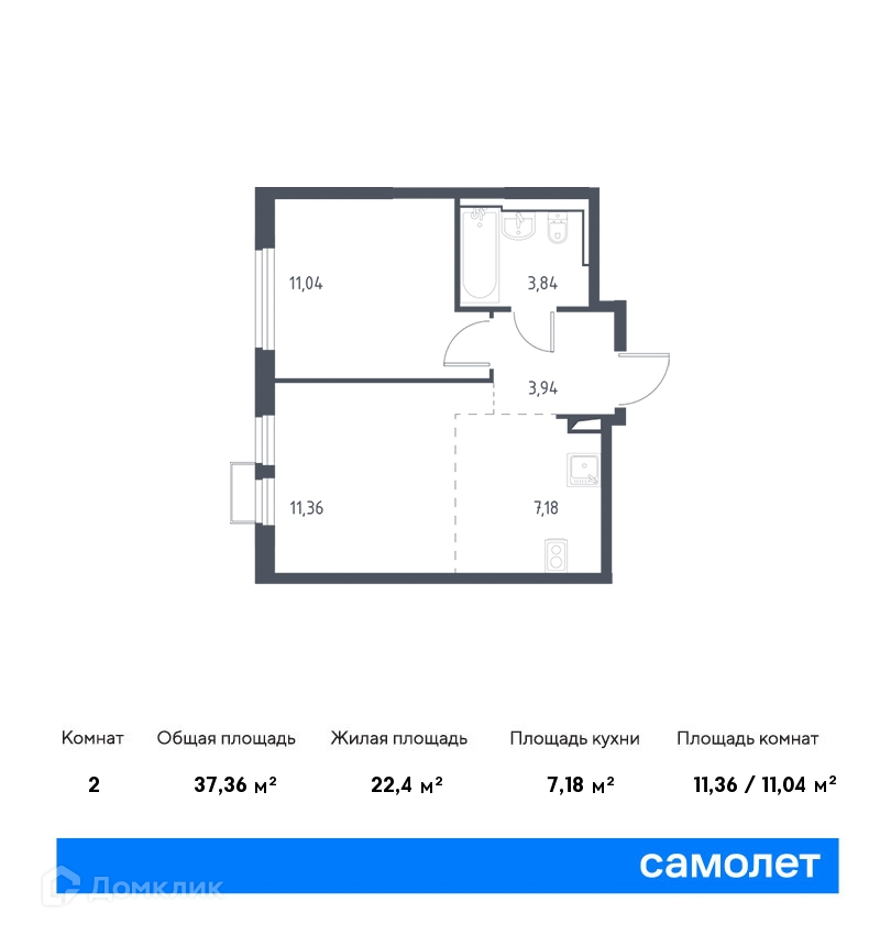 Общая площадь 37.36 м2