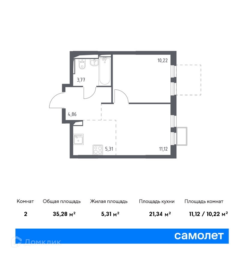 Общая площадь 35.28 м2