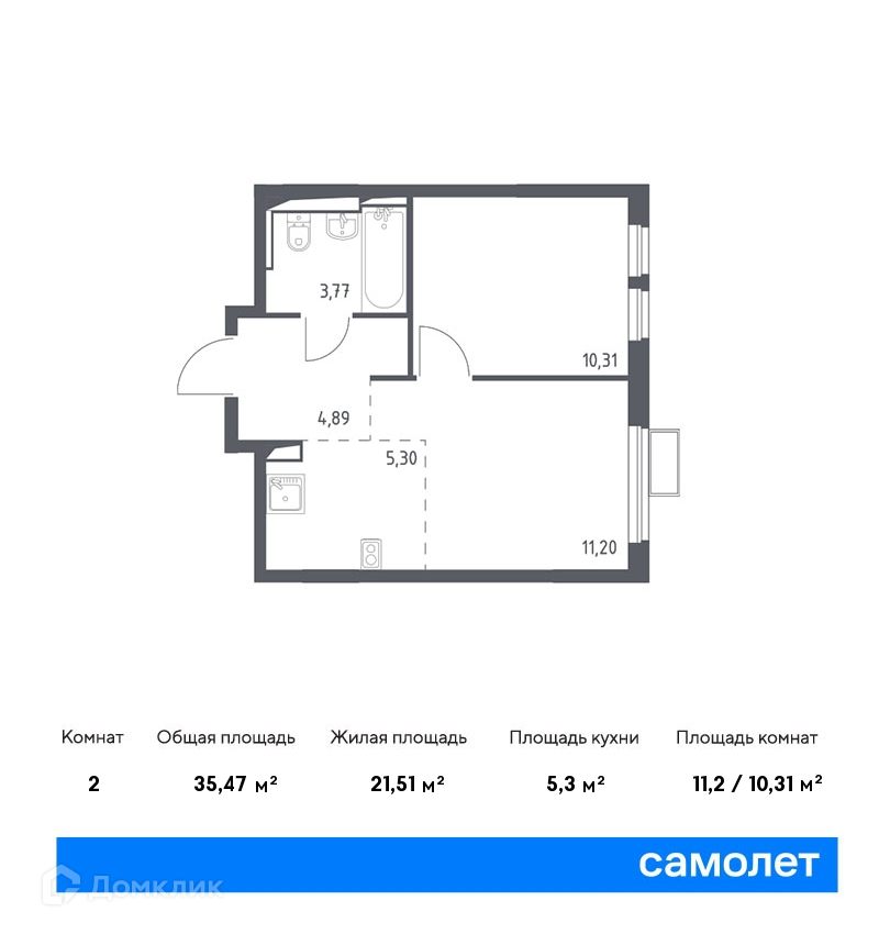 Общая площадь 35.47 м2