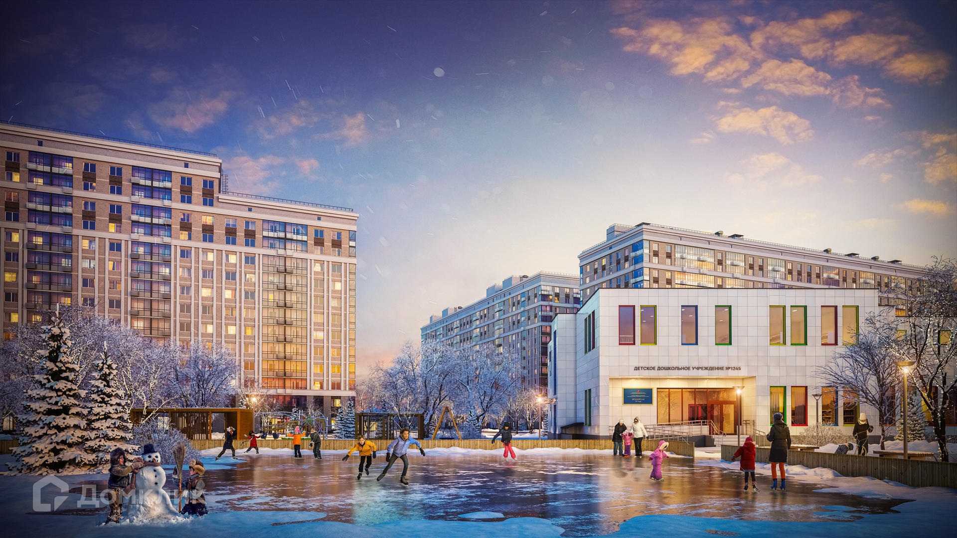 Комплекс включает монолитно-кирпичные дома высотой до 14 этажей с комфортными входными группами на уровне земли.