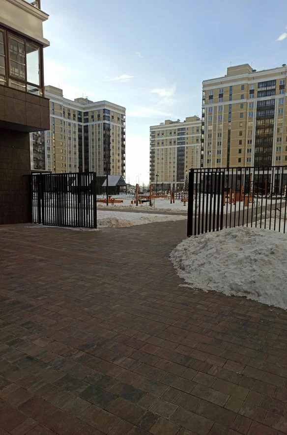 Внутренний двор без машин с парковой зоной, спортивными и детскими площадками, во внешнем дворе большая открытая парковка для владельцев жилья. на первых этажах расположены магазины и кафе для комфортной жизни.