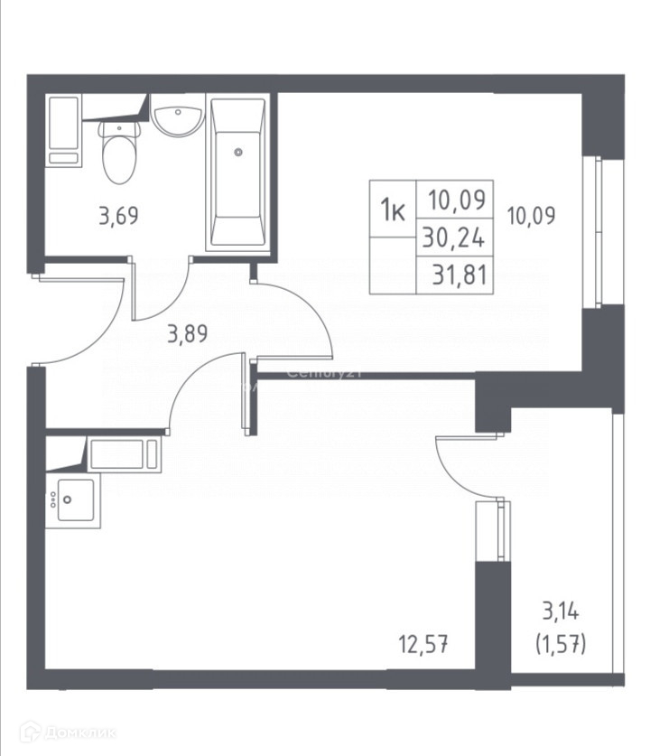 Без учёта лоджии 30,3