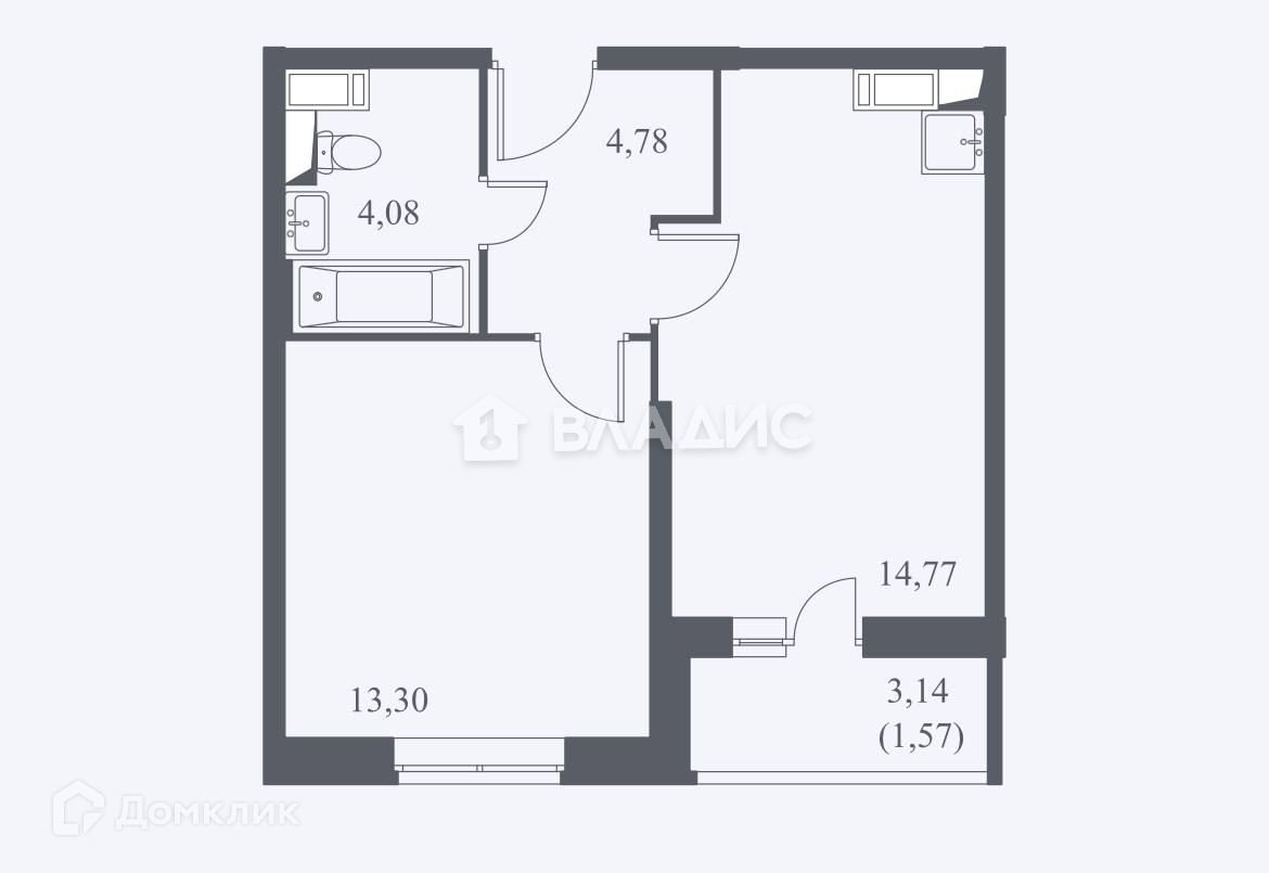 Балкон, лоджия 1 балкон