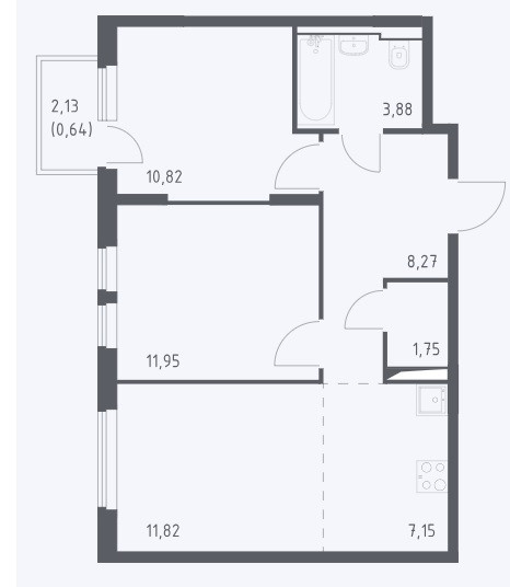 Общая площадь 56.2 м2