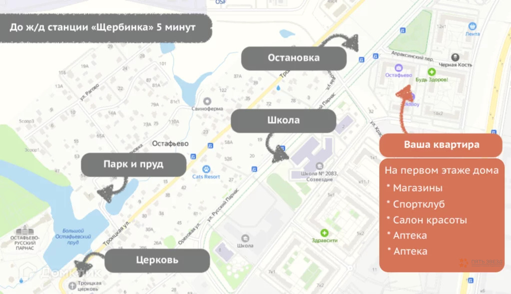 * До железнодорожной станции «Щербинка» 5 минут