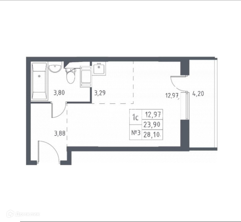 Общая площадь 28.1 м2