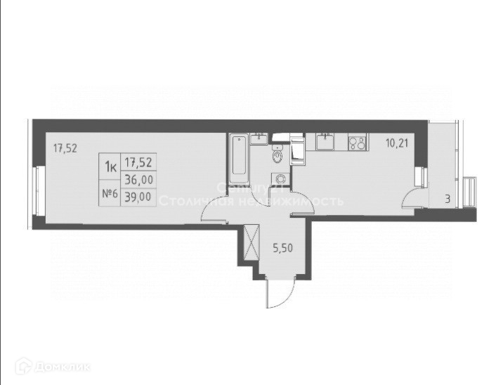 Общая площадь 39 м2