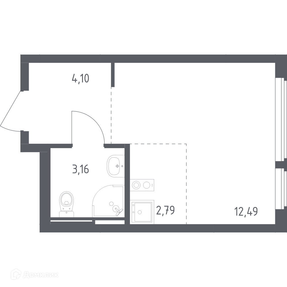 Общая площадь 22.54 м2