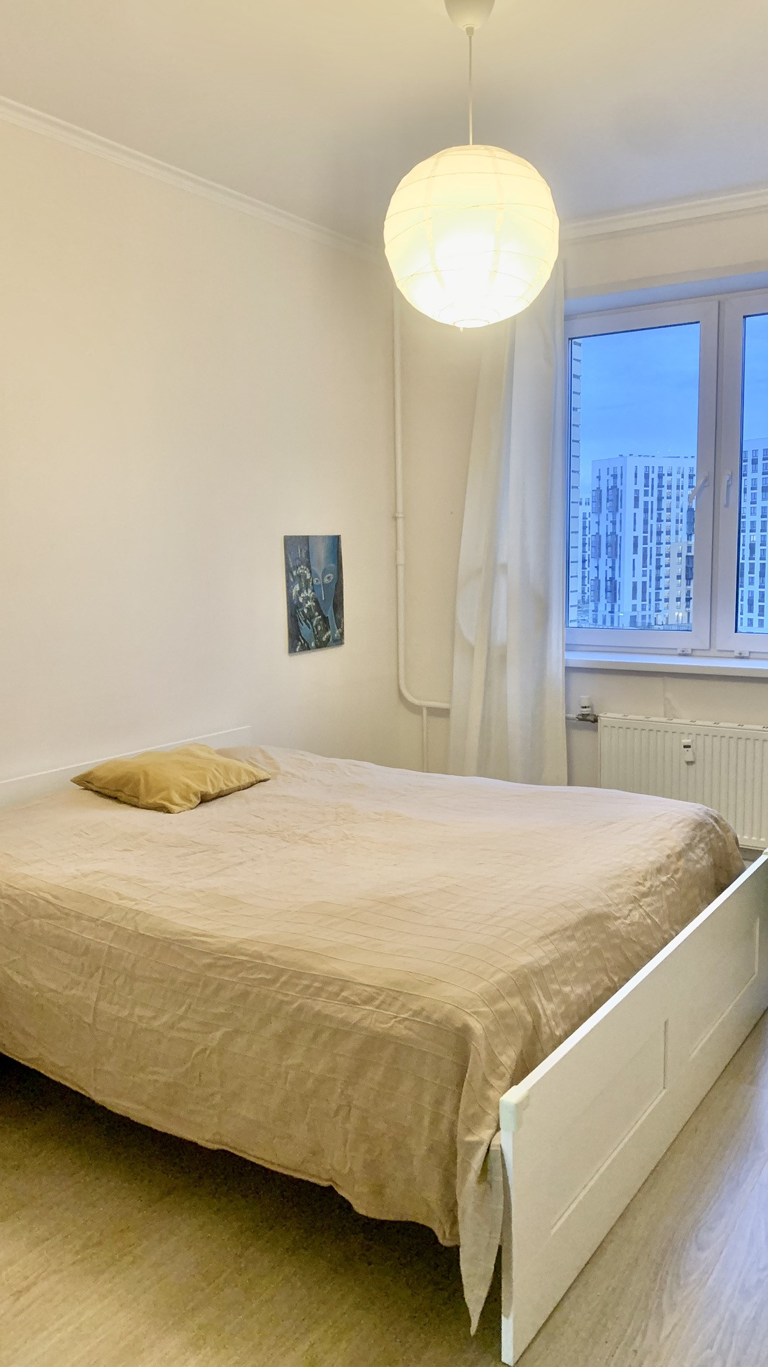Очень светлая. В большой комнате два окна из которых открывается панорамный вид. Сторона заката.