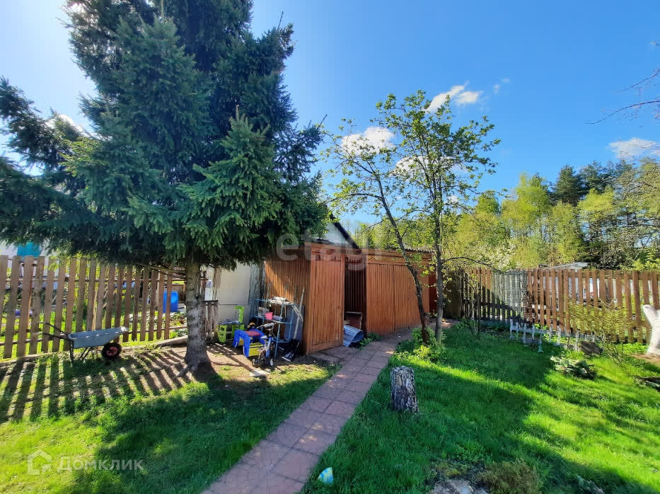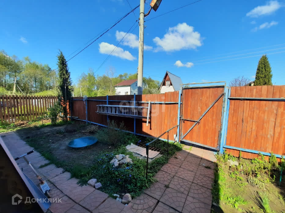 Участок 6 соток, ровной прямоугольной формы, постоянно обрабатывается. Много плодовых деревьев. По периметру установлен деревянный забор.
