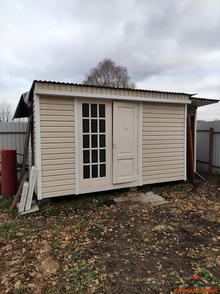 На участке есть хозблок и посажены молодые деревья.