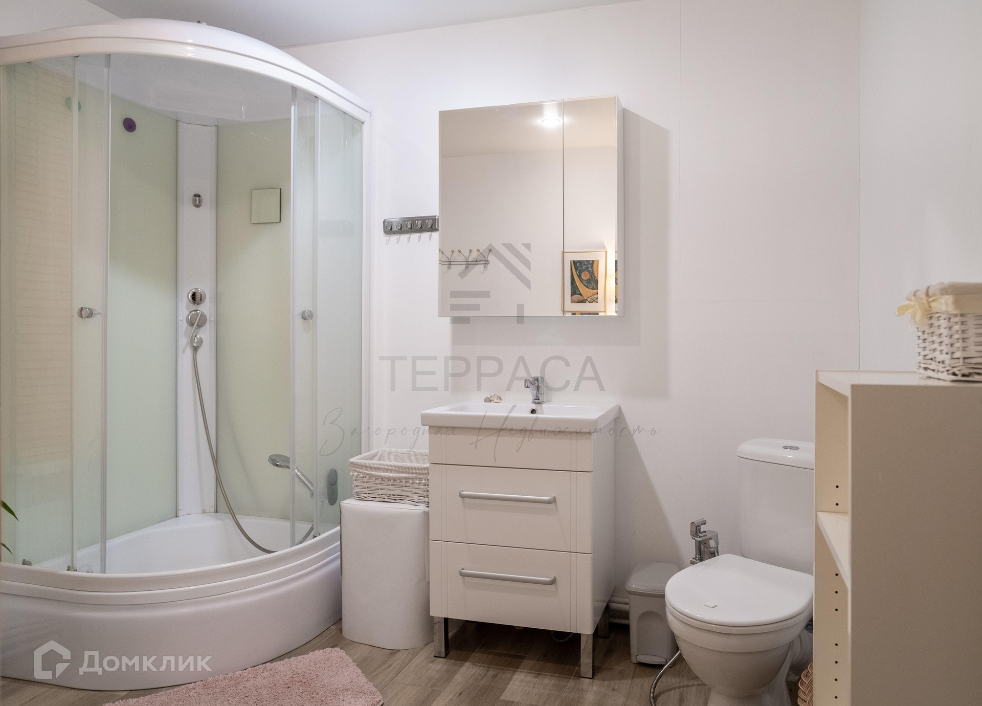 Отопление – электрический котел, регулируемый автоматическим термостатом + теплые водяные полы и радиаторы в каждой комнате.