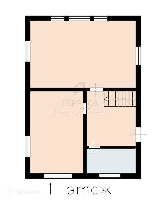1 этаж – остекленная веранда, прихожая, просторная кухня-гостиная с панорамным окном, изолированная комната, бойлерная.