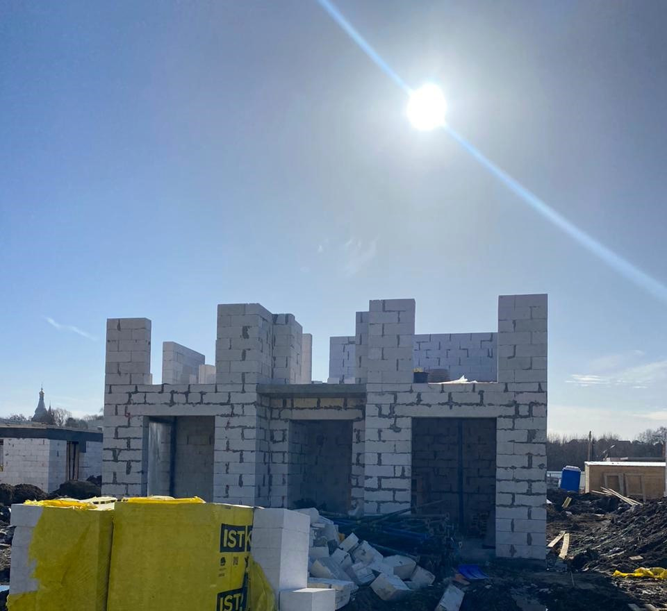 - Стены из газосиликатных блоков Ytong 400 см, монолитные перекрытия, отделка клинкером и металлочерепицей