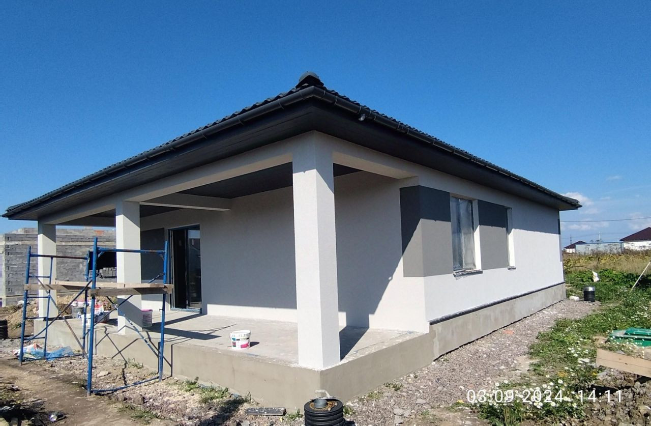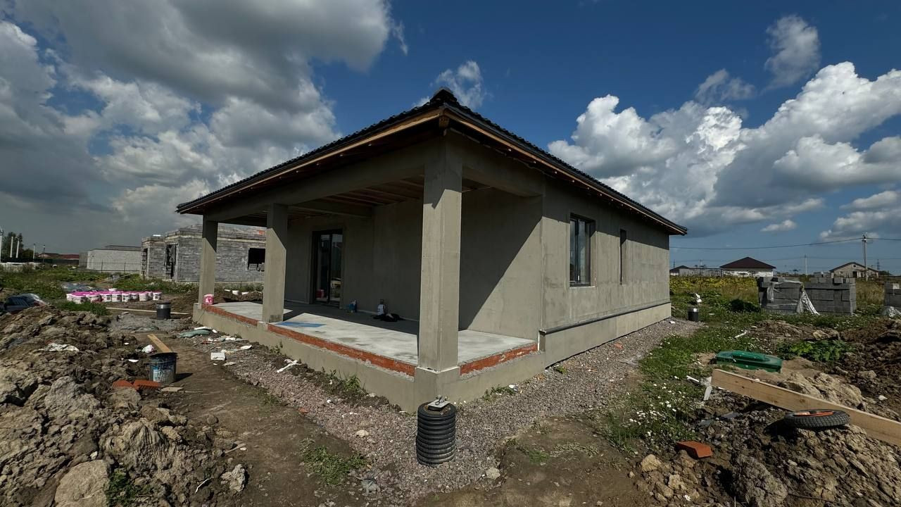 Дом построен из газобетонных блоков и имеет все необходимые коммуникации: газ, электричество, вода.