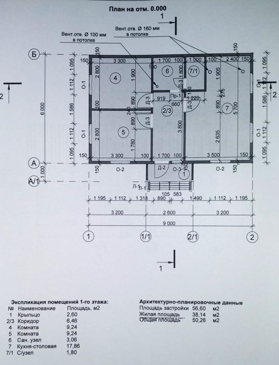 В доме кухня-гостиная 17,86 кв.м, 2 спальни 9,24/9,24 кв.м, сан.узел 3,06/1,8 кв.м.
