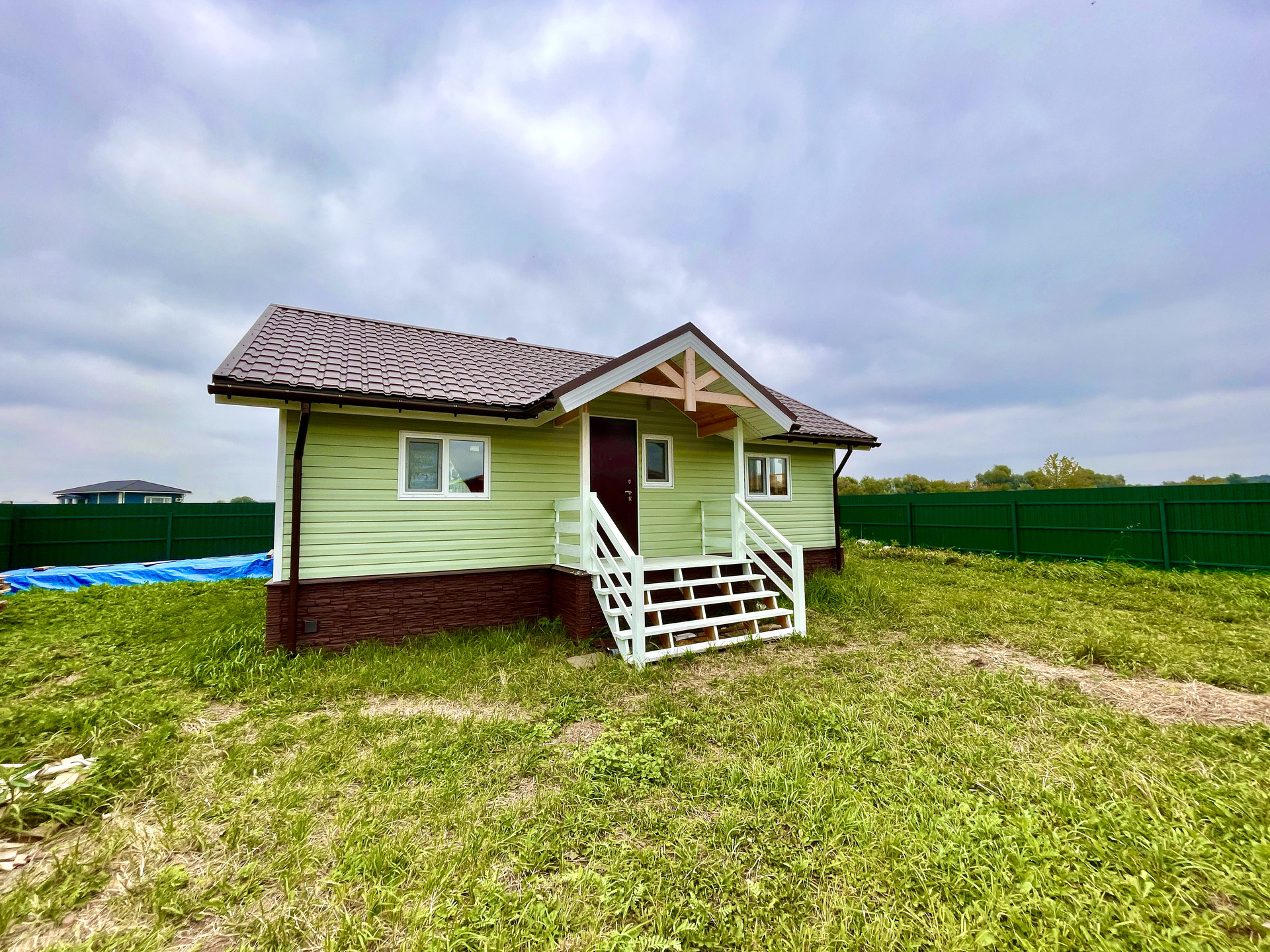 На участке есть дом 50 кв.м построен из дерева в 2023 году, перекрытия деревянные, облицован сайдингом, крыша металлочерепица, фундамент свайный.