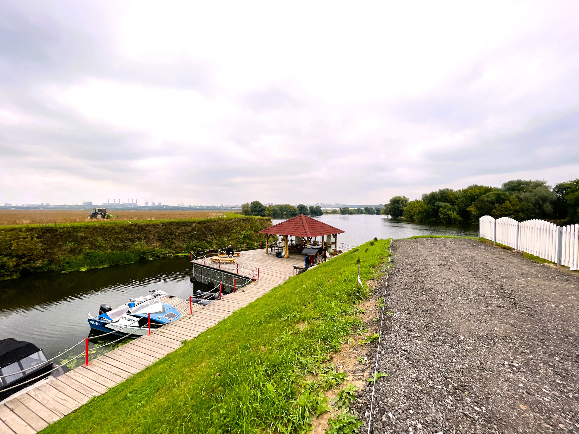 Дом находится на берегу Москва-реки. Пристань в 50 метрах (беседка и мангальная зона). В непосредственной близости к участку расположены Храм Преображения Господня, построенный в конце XVI- начале XVII века (является объектом культурного наследия народов РФ), парк-отель Крестьянская усадьба, Остров детства, Глэмпинг Парк-отеля «Остров»