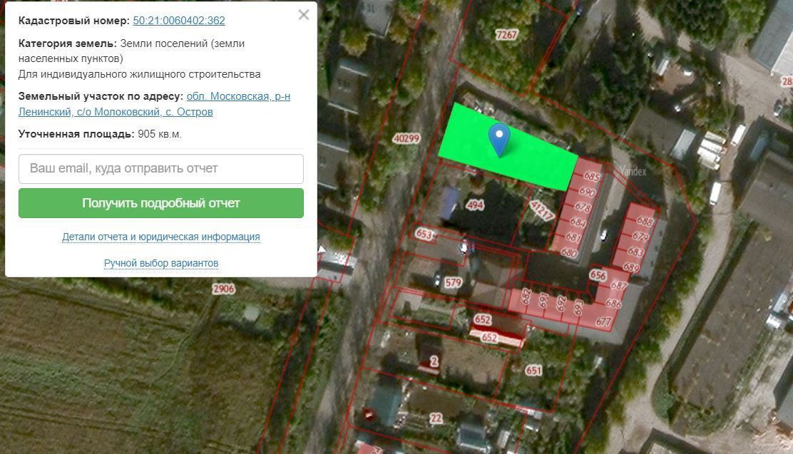 Земельный участок площадью 9,05 сотки, с кадастровым номером 50:21:0060402:362