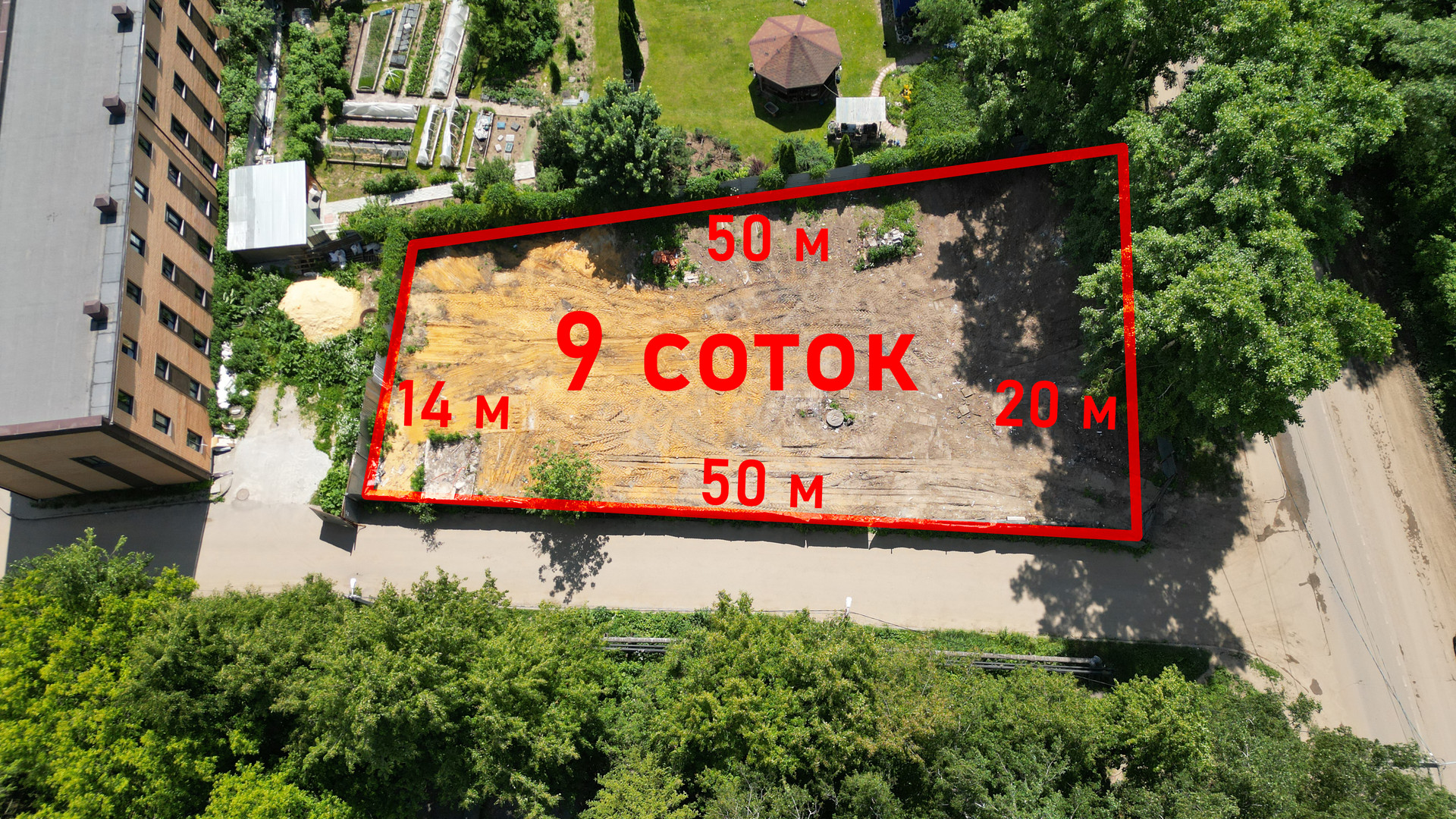 Участок правильной формы, со сторонами 20-50-14-50м. Выровненный, сухой (возможна отсыпка грунтом, или твердым материалом под Ваш заказ).