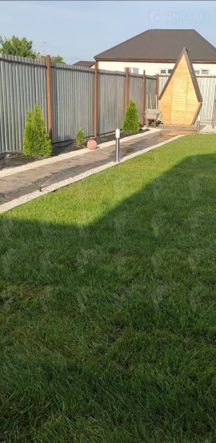 Во дворе имееться гараж пристроенный к дому так же установлена система автоматического полива и освещения.