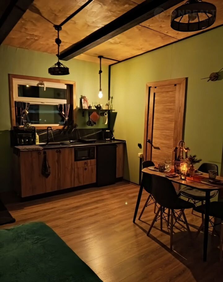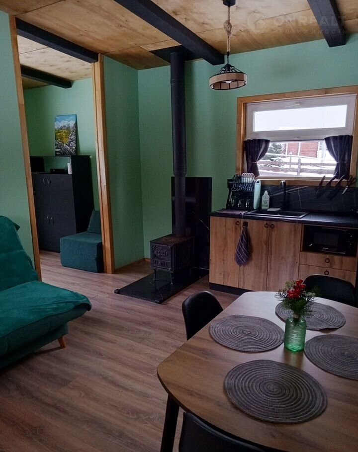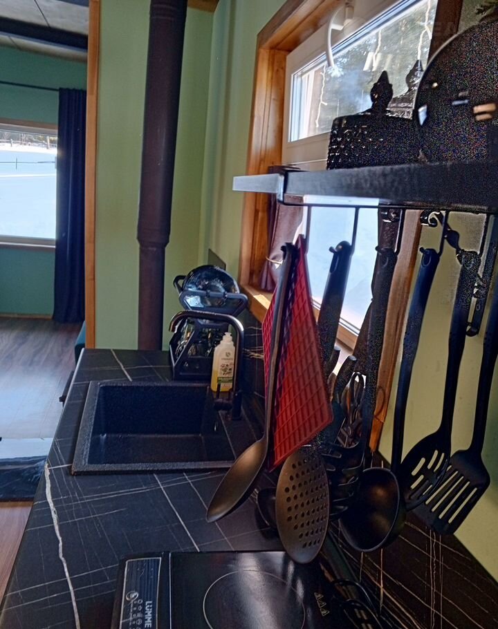В доме: спальня с двуспальной кроватью, шкафом для одежды, настольными играми и зонированная кухня-гостиная с удобным современным диваном для релакса и сна. Все удобства и техника, тропический душ, с/узел, фен,полотенцесушитель, большая кухонная зона со всем необходимым для приготовления пищи, электрический чайник ,индукционная плита с набором кастрюль и сковородой, микроволновка, холодильник, стол на 6 человек красивая посуда в достаточном количестве , удобные стулья ,тёплый пол по всему дому, колоритная дровяная печь в зимнее время по запросу топим для вас мы сами, постельное бельё и комплект полотенец каждому гостю. А также гель для душа и шампунь.