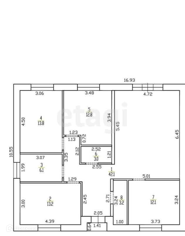 Общая площадь дома – 100 м2, имеется все для комфортного проживания, в т.ч. просторная гостиная 24,3 м2, и 3 уютные комнаты .