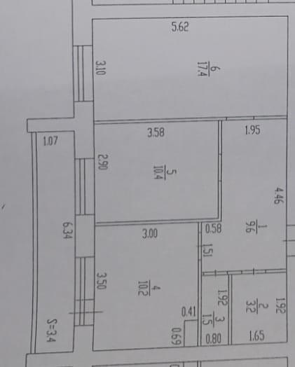 Квартира с индивидуальным отоплением, общая площадь 56 кв.м, кухня 10 кв.м.