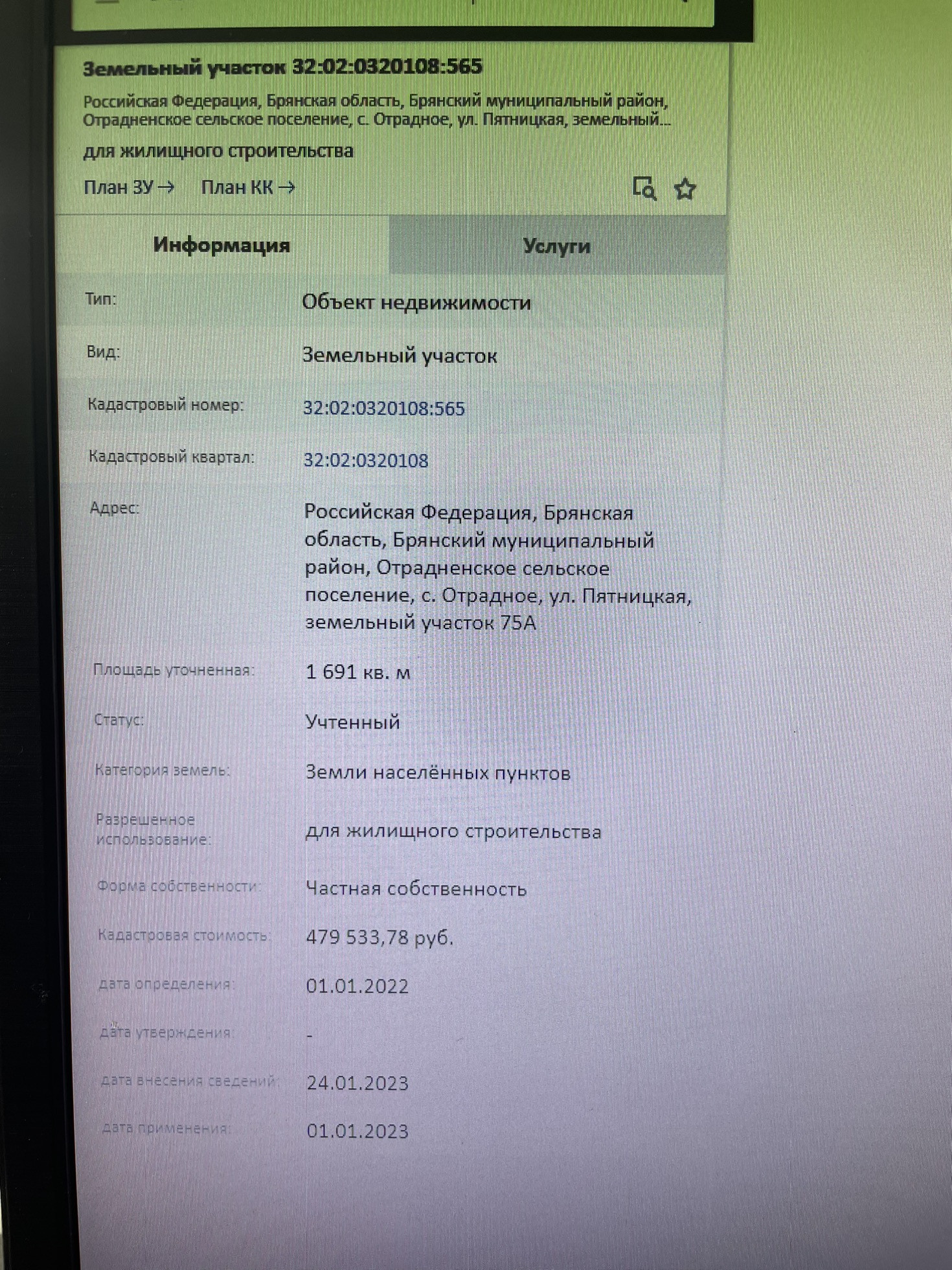 Участок под ИЖС, 16.9 сот. на продажу в селе Отрадном, Пятницкая улица, 75А