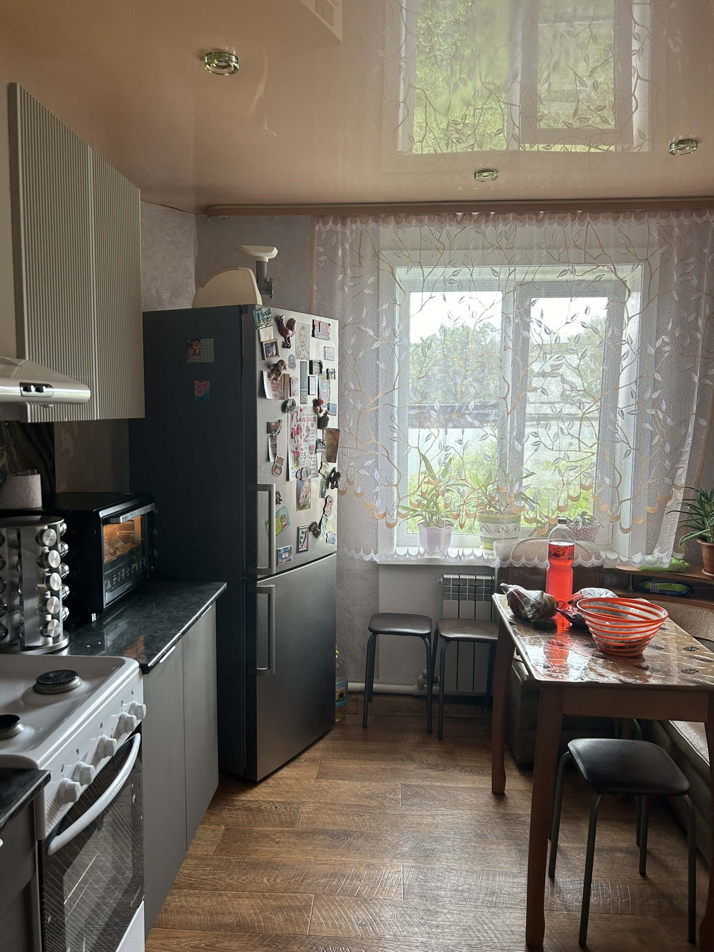 Продам трехкомнатную  квартиру в двухквартирном бетонном  доме в селе Отрадное . Квартира большая, уютная, подойдет для большой семьи; находится в 7 км от районного центра.В квартире проведен водопровод, канализация Тапаз.   Отопление: котел ( дрова, уголь + электричество ).Имеется ванная и туалет (раздельный).  К дому подведено электричество 380Вт. В квартире полностью сделан  хороший ремонт. Имеется земельный участок с садом, в котором растут яблони, ежевика, малина, жимолость,чернослив и др. На территории имеются хозяйственные постройки. Также имеется теплый  гараж на две машины, большая летняя кухня и большая баня, три  дровиника и сеновал.