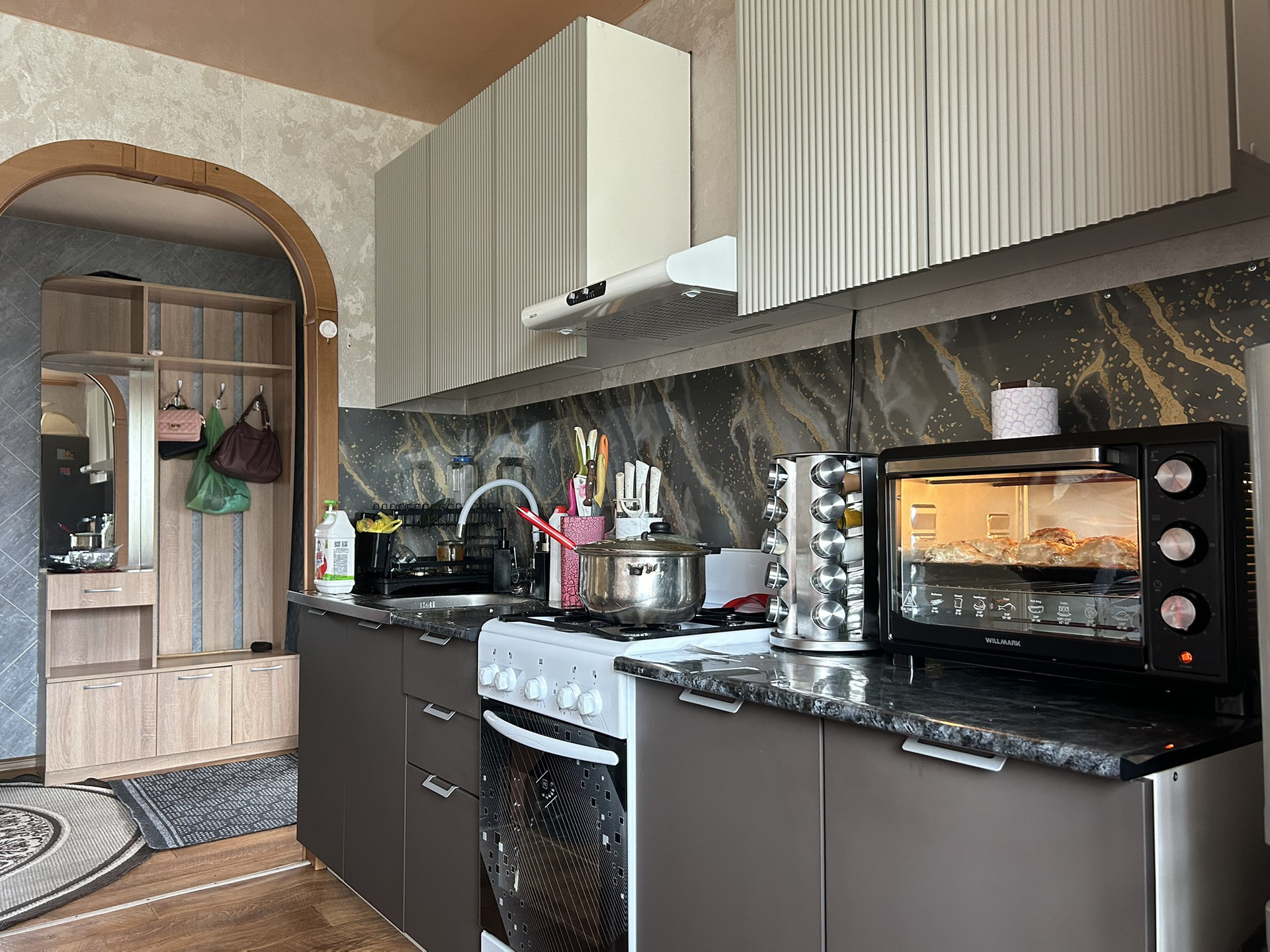 В шаговой доступности школа, магазины, кофе, ДК и др.