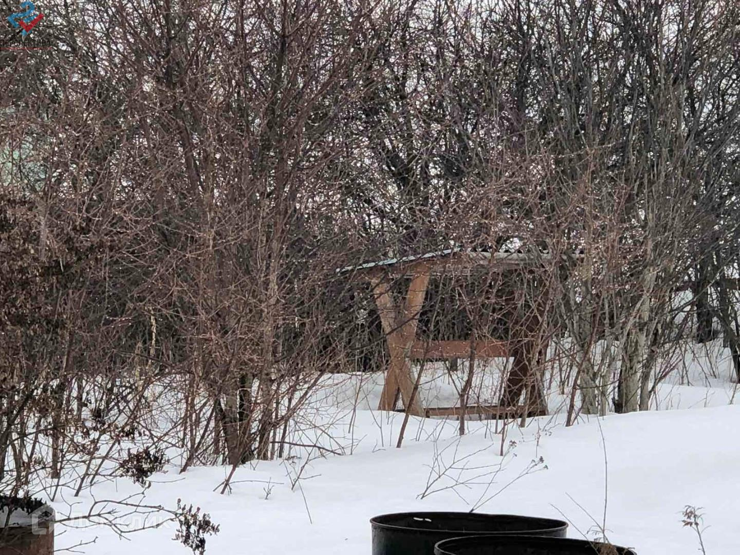 На участке плодоносящий сад, специально привезенные и выращенные сортовые плодовые деревья и кустарники: груша, яблони, терновник, сливы медовые и синие, смородина красная и черная, малина, войлочная вишня.