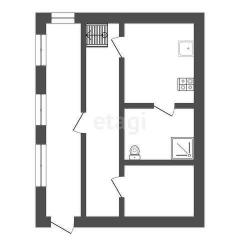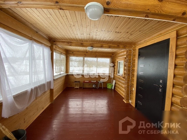 Внизу веранда с витражными, видовыми пластиковыми окнами, затем, за входной металлической дверью, прихожая из которой направо сауна, на лево кухня, санузел с душевой и туалет. Из прихожей деревянная лестница ведёт на второй этаж. Здесь комната-кабинет и спальная комната. Пластиковые окна.