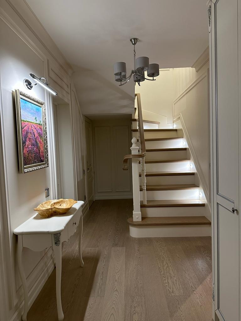 Дом 145м2 расположен  на участке 14 соток. Участок правильной формы, ровный, без перепадов. На участке  выполнены   - великолепный ландшафтный дизайн,  включающий в себя  декоративную и плодовые  зоны,   работы по   декоративному энергоэффективному  освещению, автоматической системой  полива и много другое. На участке  расположены  большая, закрытая беседка с  функциональным  печным комплексом, эксклюзивной мебелью  и оборудованием. На участке парковка на 4 машиноместа с возможностью установить навес. Дом  полностью оборудован всей необходимой  топовой  бытовой  и  тв-техникой. Система умный дом. Канальное кондиционирование и приточно-вытяжная  рекуперационная  система  , теплые полы, эксклюзивные  окна (дуб, лиственница) Топовая , немецкая  газовая  автоматика, сантехника  и оборудование. И многое другое. Дом очень  энерго эффективен и прост в  управлении.  Полностью мебелирован. Вся мебель  делалась  на заказ.