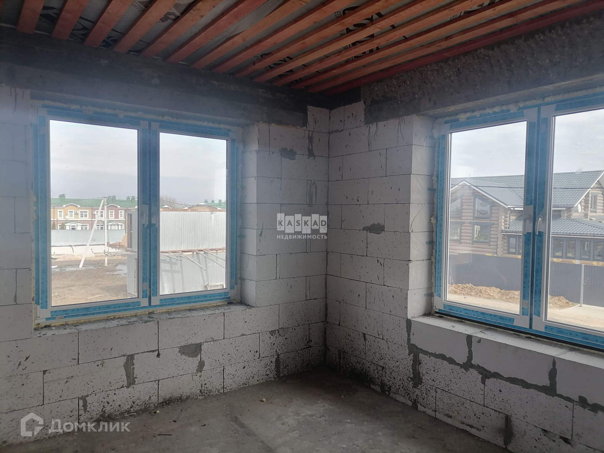 Монолитная плита фундамента 300 мм, стены возведены из газобетонного блока 375 мм с утеплением и штукатуркой «Короед», перекрытие монолитные 200 мм, окна Веко, утепленная металлическая входная дверь, кровля из металлочерепицы.