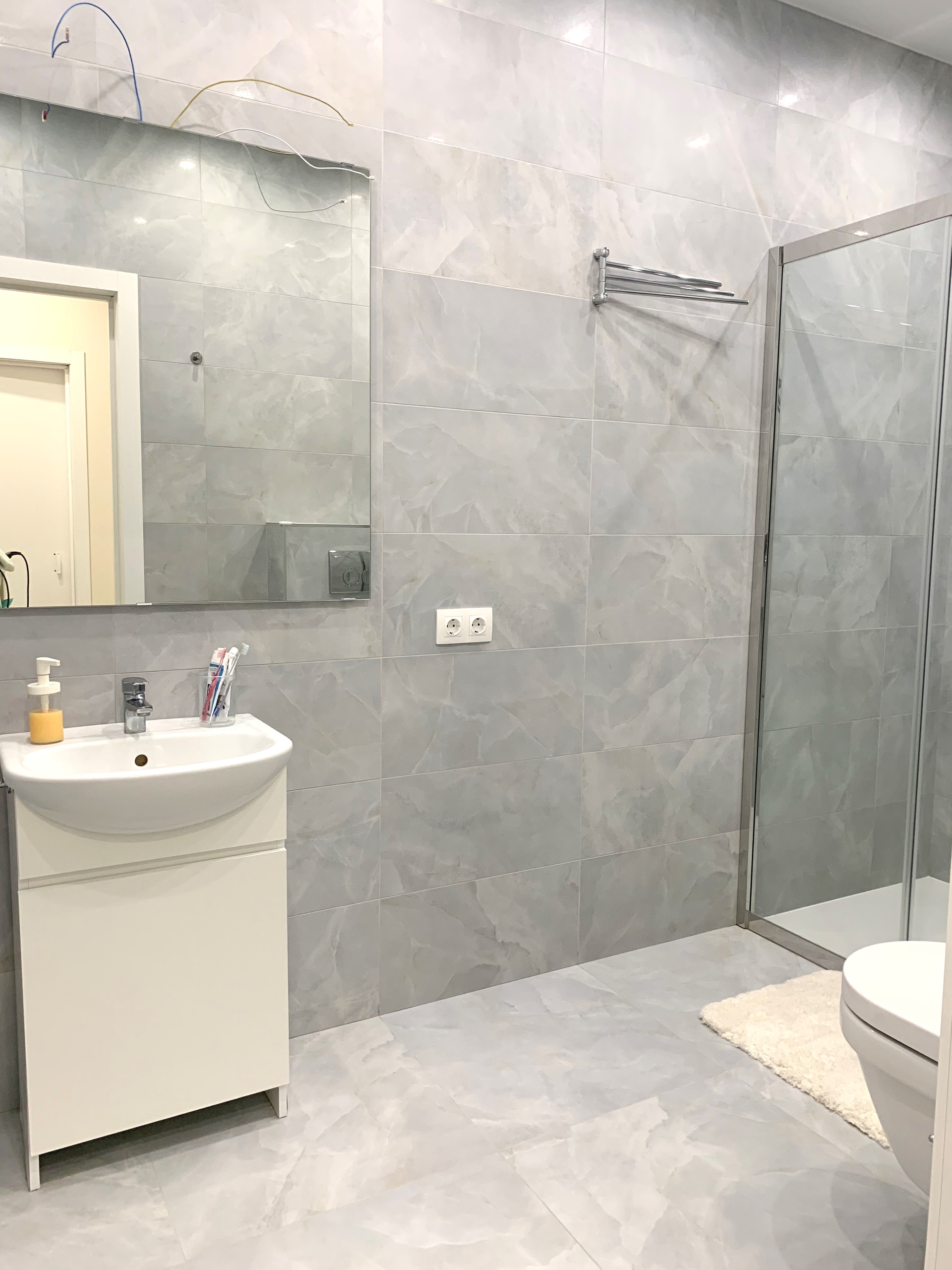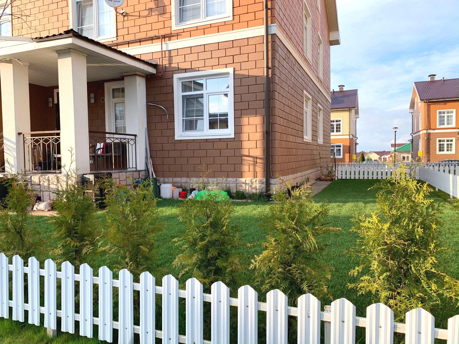 По всему первому этажу теплый пол и во всех санузлах.На кухне встроенный кухонный гарнитур с бытовой техникой, отдельно встроенный холодильник и отдельно встроенный морозильник Libherr. Посудомойка и вытяжка Bosch. Сантехника от Villeroy Boch и Hansgrohe. Видеодомофон, wi-fi. Рулонные солнцезащитные шторы на окнах.  Керамогранит из Европы. На участке земли 2 сотки  роскошный рулонный газон, живая изгородь из туй. Солнечная сторона. 2 машиноместа перед входом. На территории поселка общественный центр (кружки для детей, и т.д.)., пекарня, кафе..  Два взрослых собственника. Документы готовы к сделке.