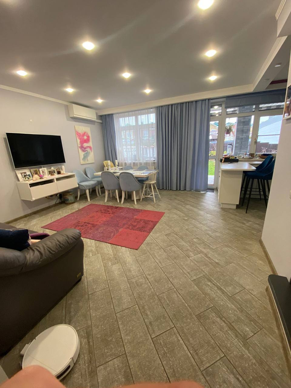 Таунхаус продается со всей мебелью и бытовой техникой, в том числе 4 телевизора "SAMSUNG",стиральной машиной "SAMSUNG" нового поколения, посудомоечной машиной, двумя холодильниками, пылесосом и т.д.