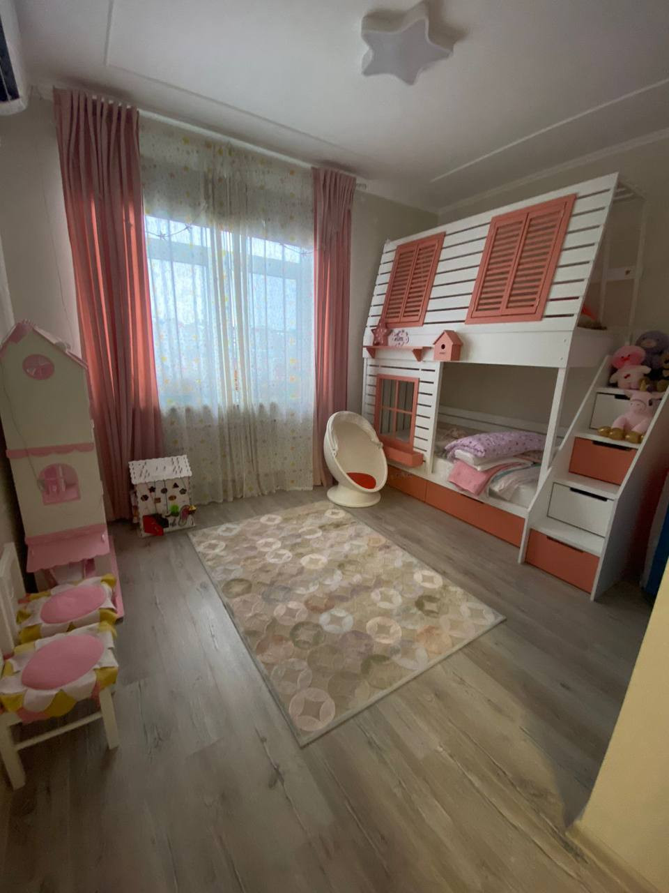 2 этаж : Две спальни (одна спальня с собственным санузлом), детская комната, гардеробная комната, два санузла. Установлены кондиционеры, система видеонаблюдения, видеодомофон с дистанционной кнопкой.