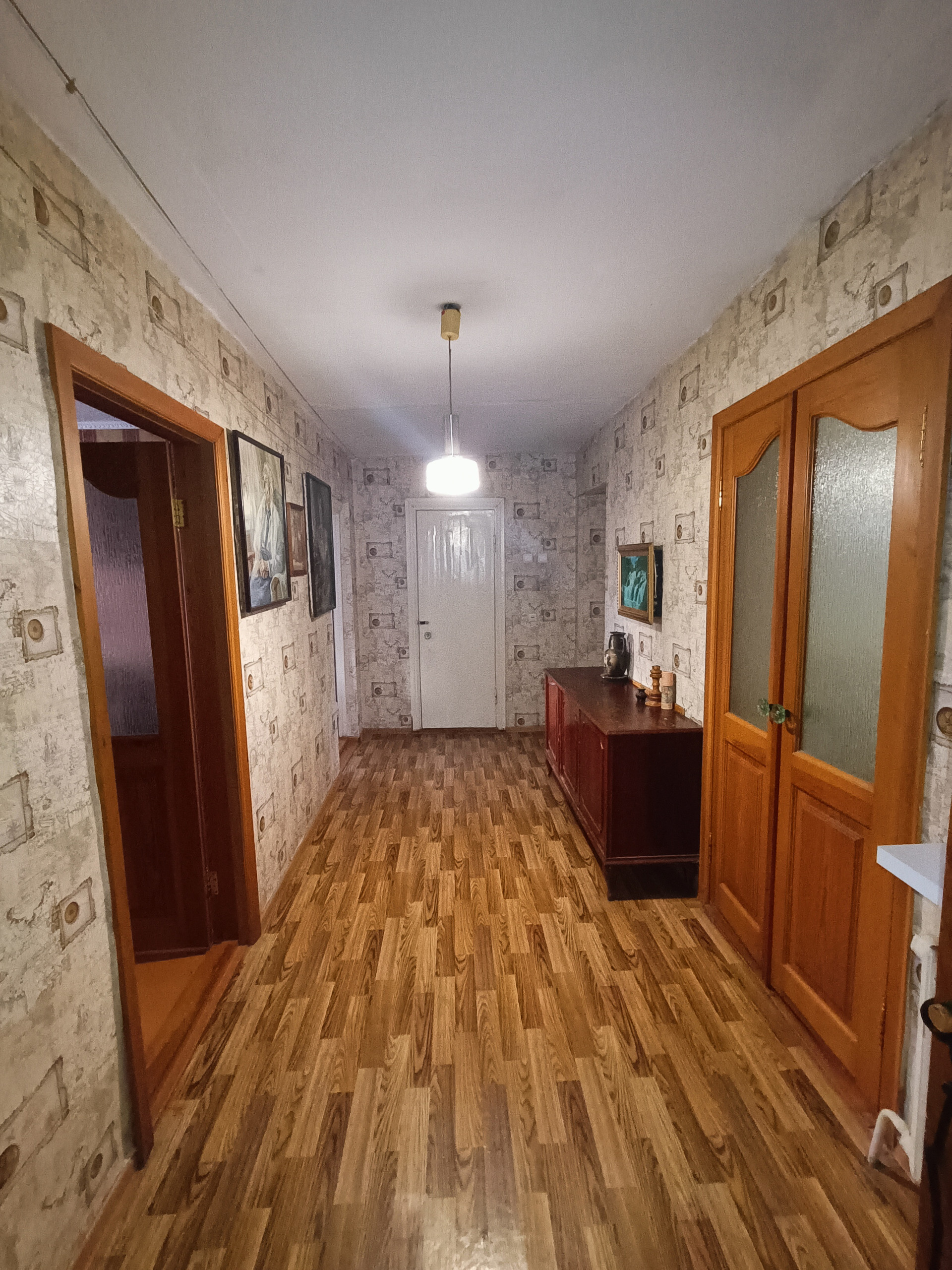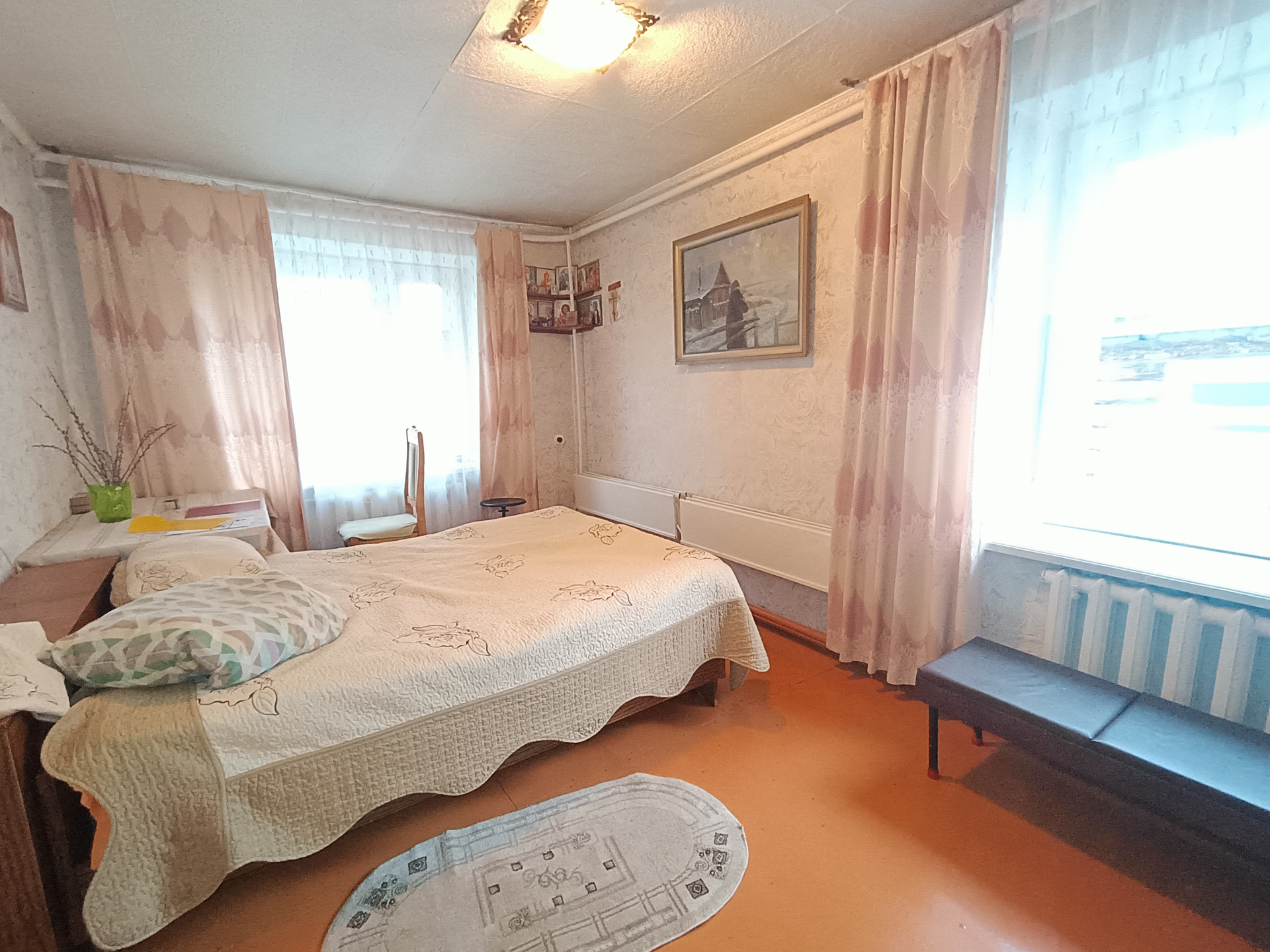 Продам квартиру на земельном участке. Общая площадь более 100 кв.м., по документам 88.8. 4 просторных спальни, зал, кухня, коридор, ванная комната, сан.узел. Отопление центральное и газовое. Центральная вода и канализация. На участке баня, гараж, хоз.постройки. Много саженцев, плодово-ягодных растений.