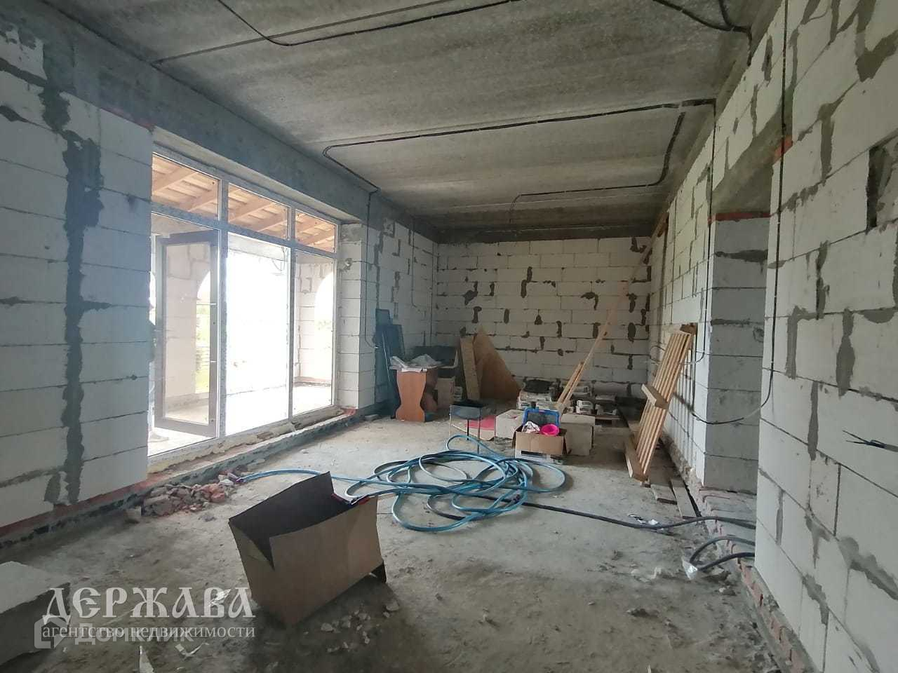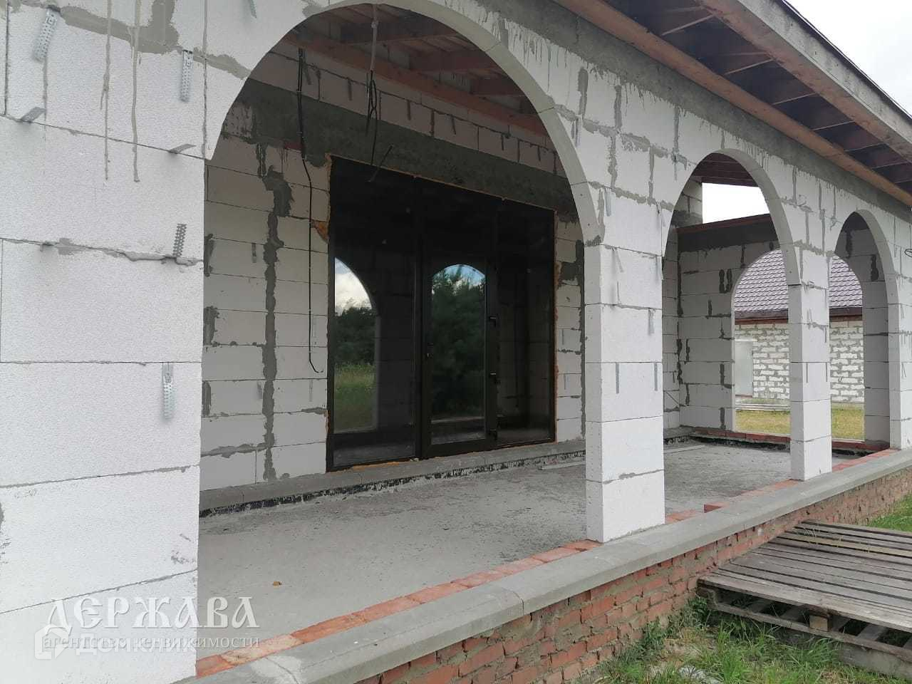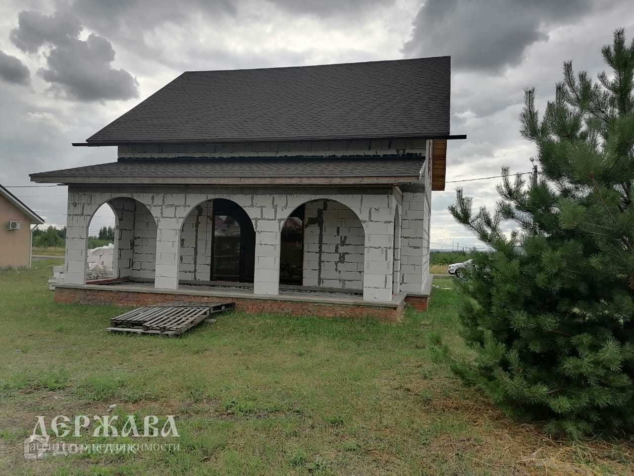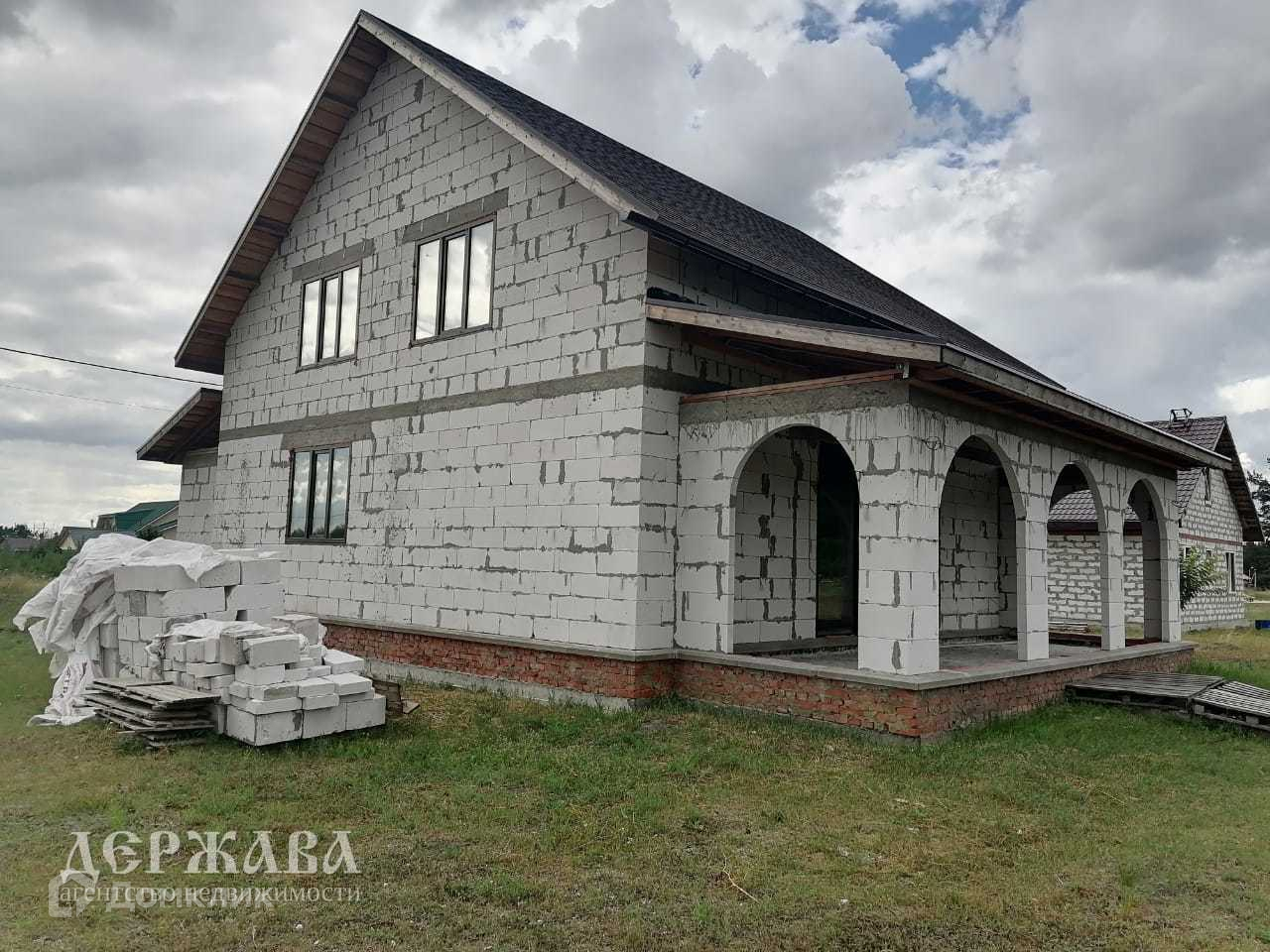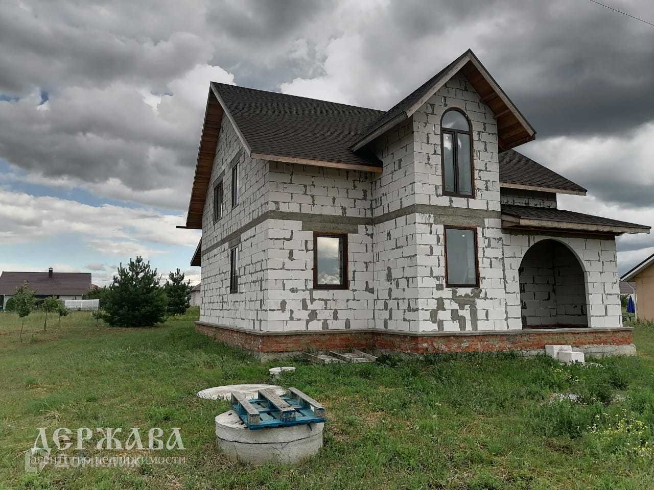 Дом 170,5 кв.м. выложен из Саратовского газоблока (толщина 400), не облицован (есть закладная под кирпич), фундамент ленточный, межэтажные плиты перекрытия, мягкая кровля, залит черновой пол, окна ПВХ фирмы KBE, разведена электропроводка, имеется второй выход из кухни-гостинной на крытую террасу.