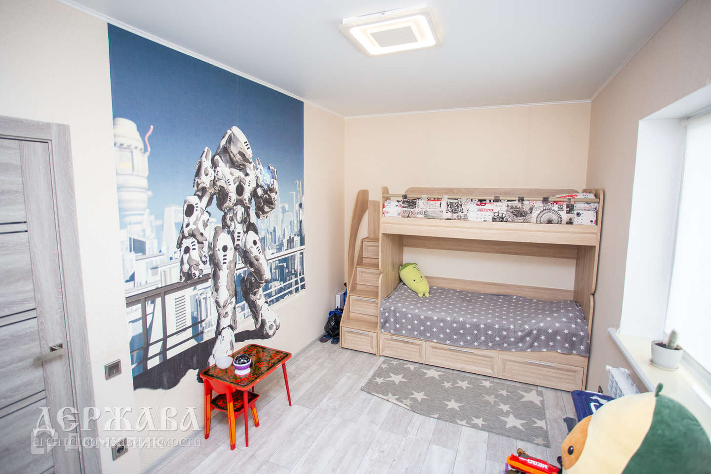 По планировке: коридор с удобным шкафом-купе, просторная кухня-гостиная с выходом на террасу, две спальные комнаты и совмещенный санузел.