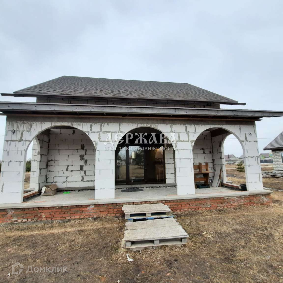 Планировка: 1-й этаж - кухня-гостиная, спальня сан. узел (совмещенный), котельная, прихожая. 2-й этаж - 3 комнаты, сан. узел (совмещенный). Первый этаж - с ремонтом, на втором этаже - пред чистовая отделка. Установлена металлическая лестница (кованные перила в наличии, но не смонтированы).