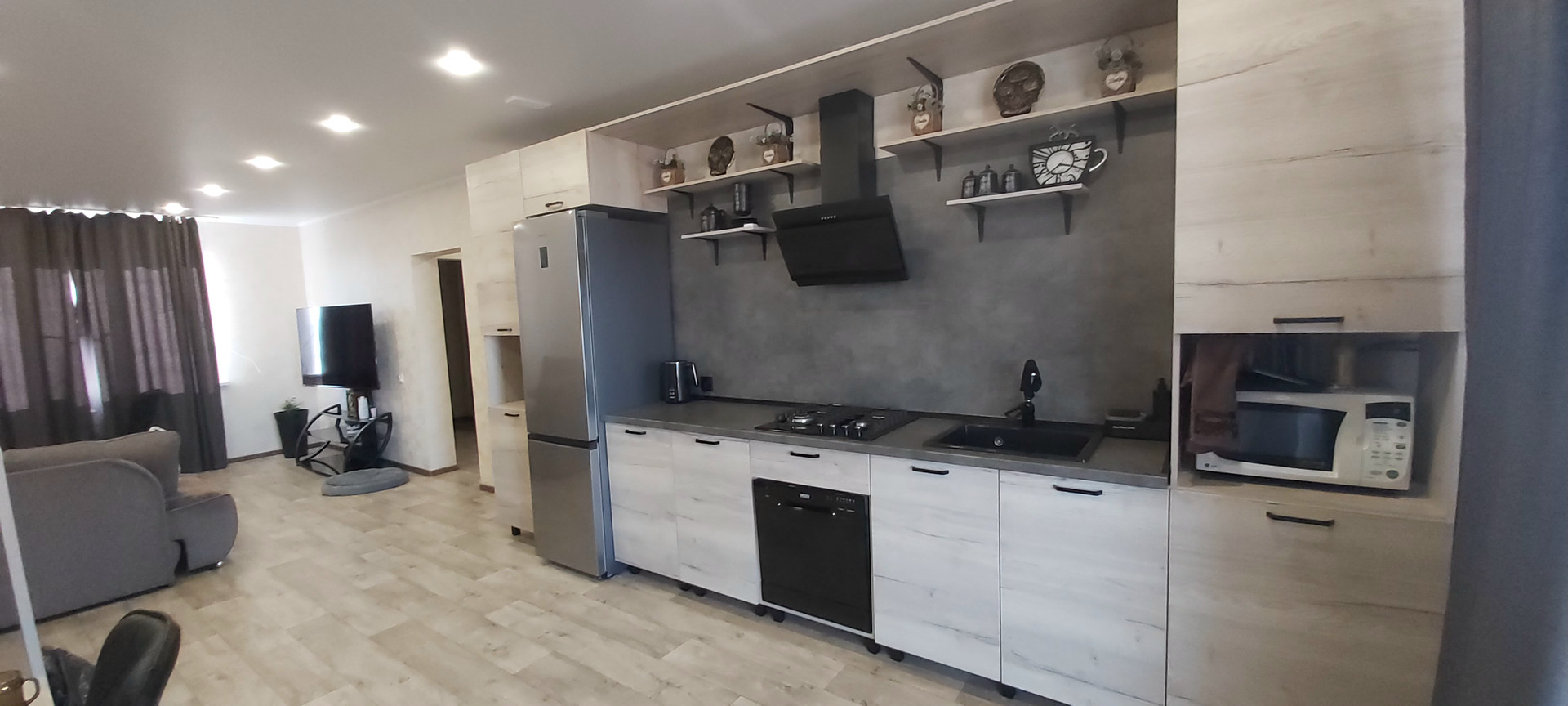 Дом полностью готов для проживания,на участке есть летний душ(обложен кафелем)и туалет(обшит пластиком),беседка с мангалом.В доме новый ремонт .Продается частично с мебелью и техникой.Гараж 12×6м с секционными воротами.Видео наблюдение по всему участку.В шаговой доступности школа,садик и остановка.Возможен обмен с вашей доплатой