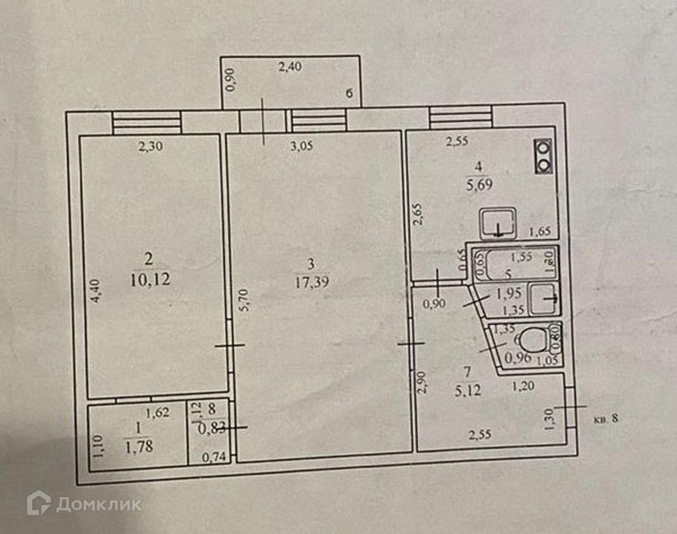 Площадь кухни 5.69 м2