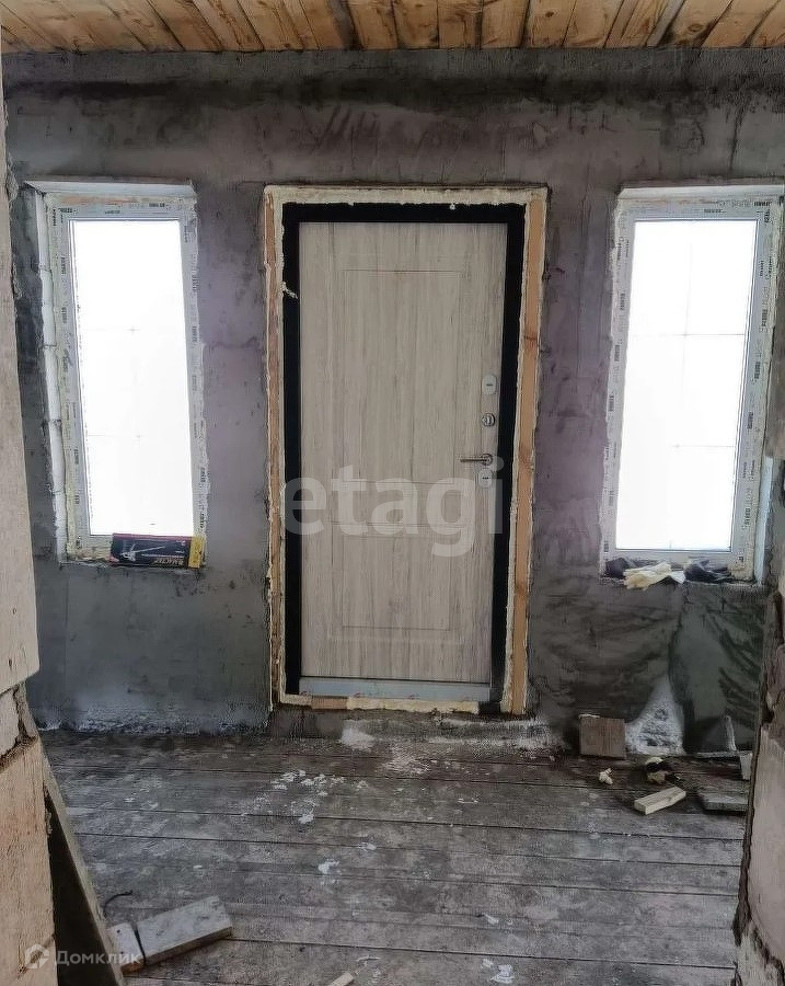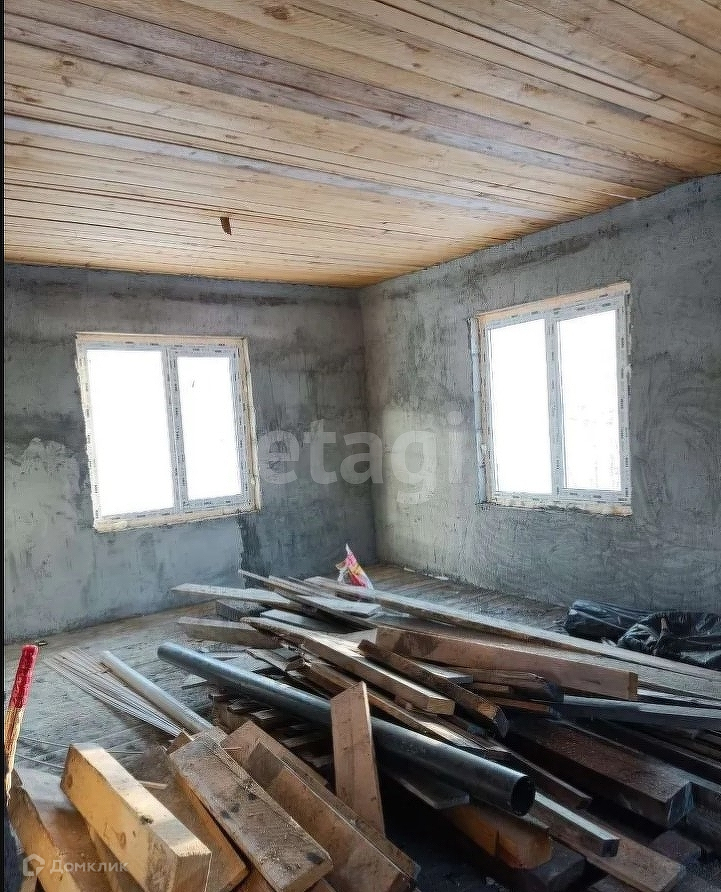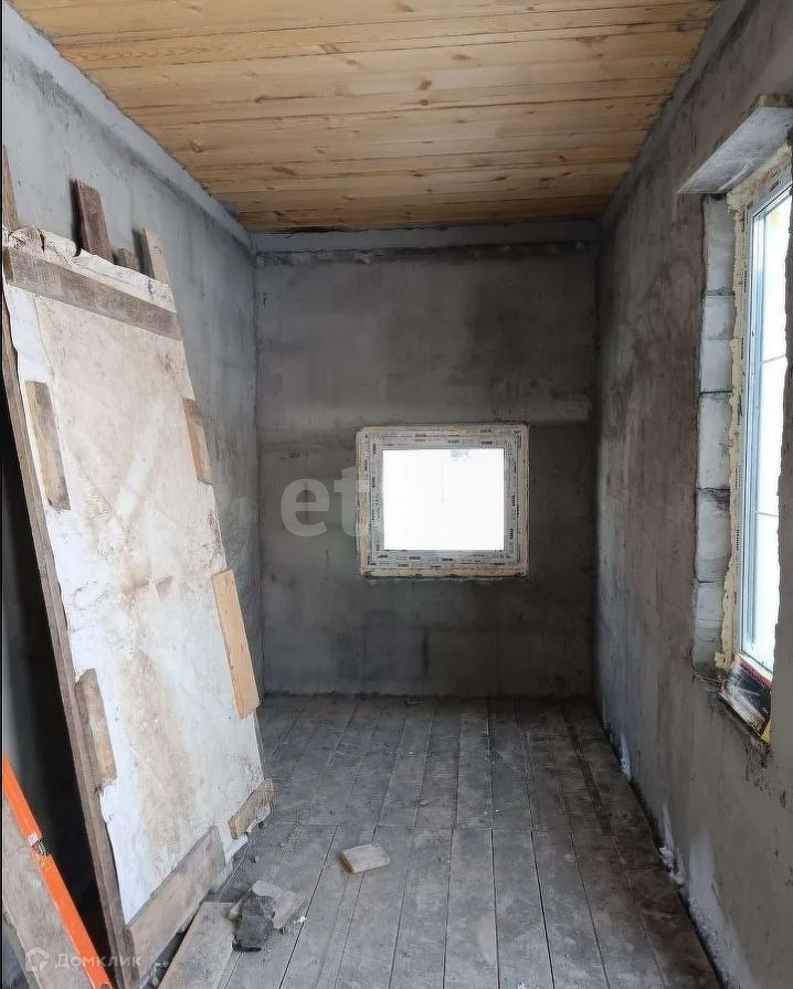 Дом не достроенный, под крышей, полы потолки сделаны, окна двери вставлены, стены внутри заштукатурены под обшивку, свет 380 подведен к дому, воду можно пробурить, газ в селе.