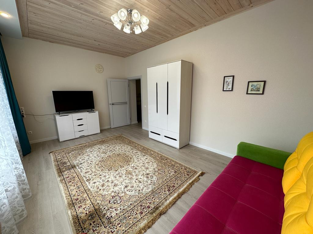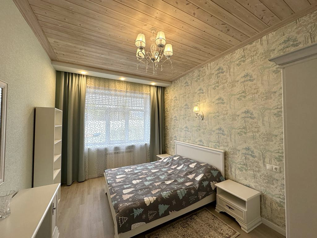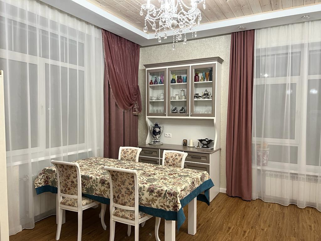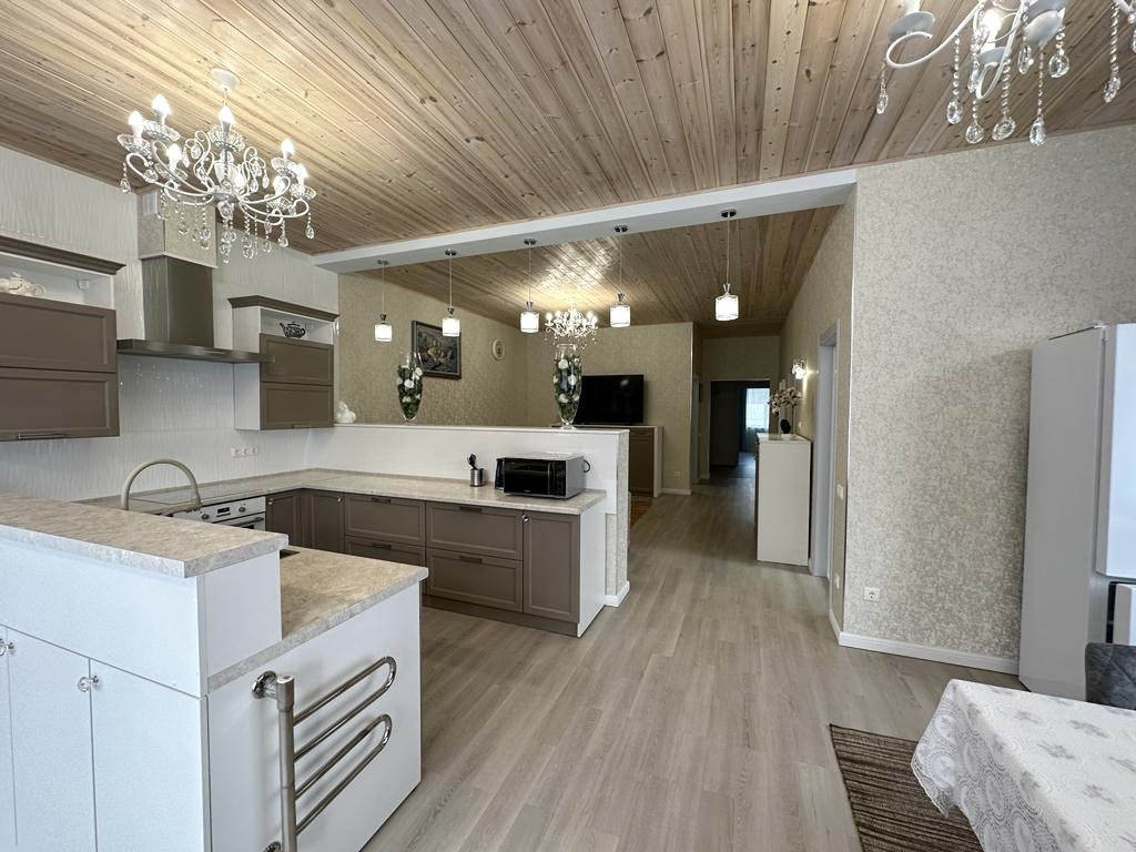 Большой дом (3 спальни, во всем доме теплые водяные теплые полы и деревянные, экологичные потолки): веранда с электрическим теплым полом, с кухней и обеденной зоной; прихожая с гардеробной; гостиная зона, обеденная зона, кухня. Установлен кондиционер и вся необходимая бытовая техника. Из кухни выход в холодную комнату для хранении продуктов, кухонной техники и тд. Кладовая. Просторная ванная комната. 2 Спальни с большими 2спальными кроватями (180*200), шкафы, комоды. Третья спальня гостевая (детская). К дому примыкает котельная с отдельным входом. Из Дома выход в гараж, и санузел с постирочной.