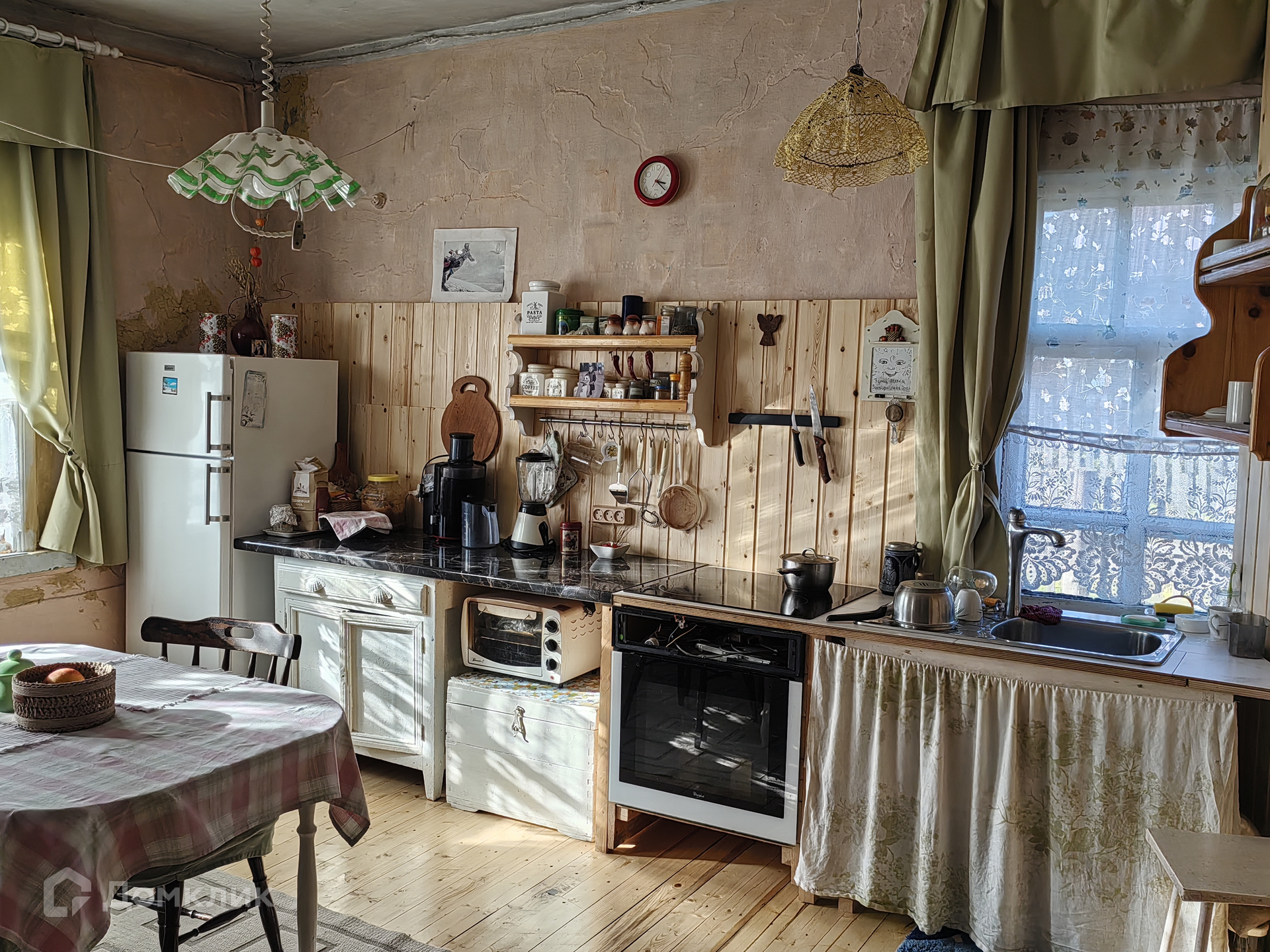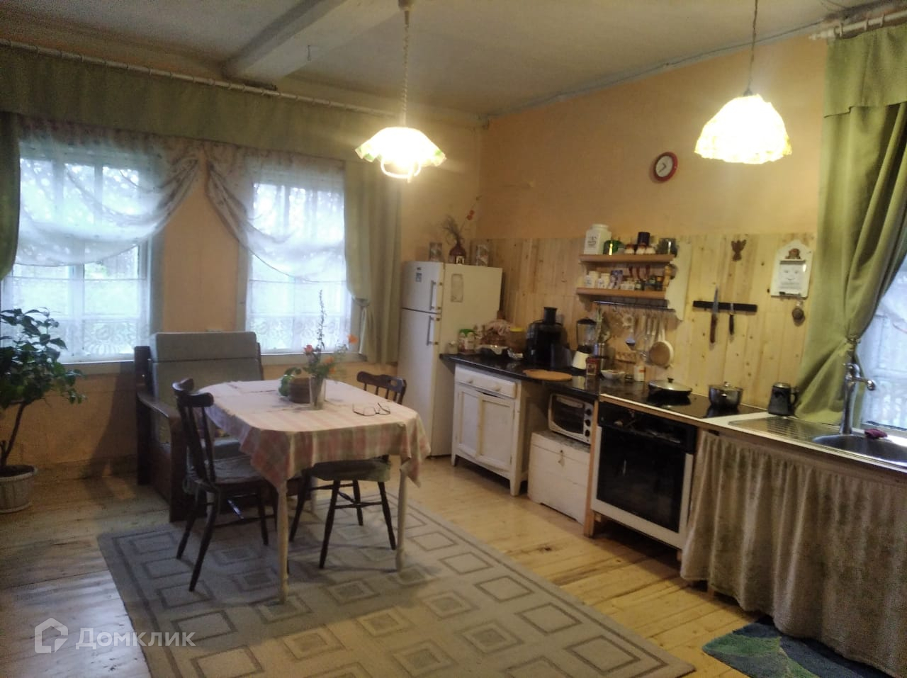 кухня, санузел, душевая кабина). В доме новая электропроводка, выложена печь с камином, где уютно можно проводить зимние вечера с чашечкой кофе. Своя скважина. Мебель и бытовая техника входит в стоимость дома. На участке общей площадью 25 соток, имеются хозяйственный постройки - баня, дровяник, плодовый сад: яблони, груши, вишня, слива, черешня, орех, смородина, ежевика, жимолость, крыжовник, 4 вида малины и клубники, земляника, цветы, кустарники, хвойные и лиственные деревья.